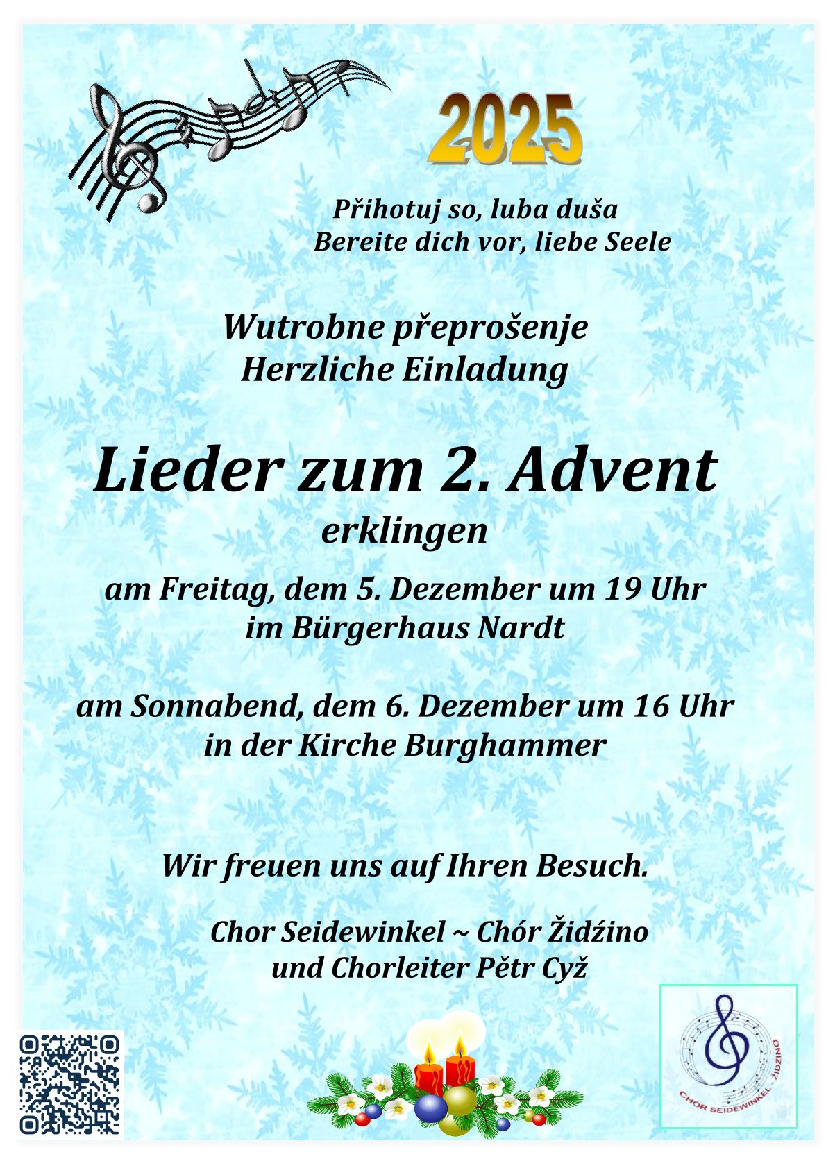 Am 2. Adventswochenende erklangen Lieder Zum Advent in Nardt, Lauta Kulturkirche und Seidewinkel.